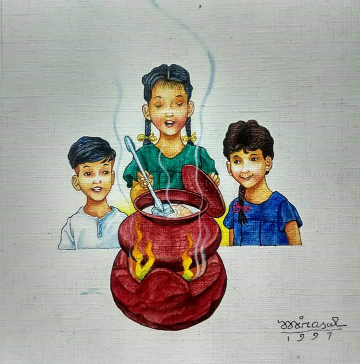 “…I next did for Tahanan the illustrations for Didith Tan-Rodrigo ‘s story “Tamales Day”. Now, the process of creating art for this book was a very delectable one, I must say, because I was invited by Didith to their home to observe and take pictures of them while making tamales.